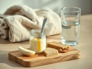 Osoby, które źle czują się na całkowicie pusty żołądek, często dobrze reagują na mały, prosty posiłek. Może to być między innymi: